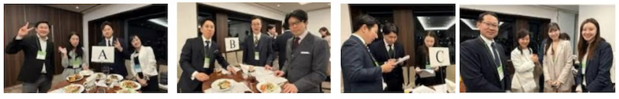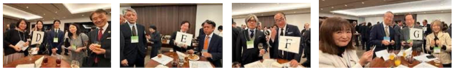 今回の特徴は初めて参加者名簿(卒年、学部学科、勤務先など)を作成し配布したこと、進行の工夫として最初は若手参加者を中心にA~Gまでの7テーブルに割り振り、初めて参加された方もコミュニケーションしやすいようにファシリテイターとしてSBC理事が参加。その後、テーブル同士で入れ替話もわって輪を広げていくことも試みました。このキッカケづくりで、いつも以上に皆さんの会盛り上がりを見せていました。